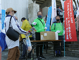 ケーズデンキスタジアム水戸での「あいさつ・声かけ運動」街頭キャンペーンの様子(令和3年11月14日)