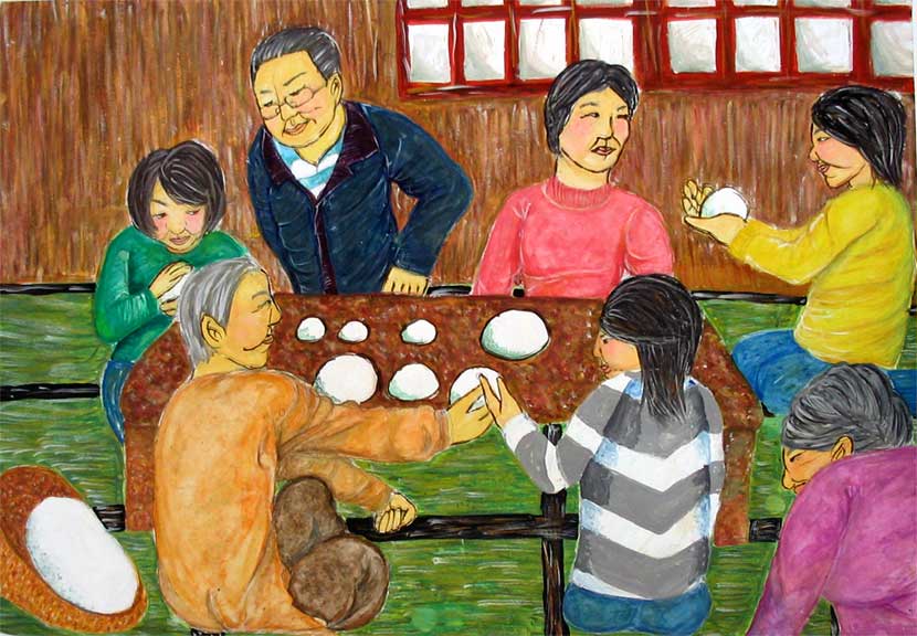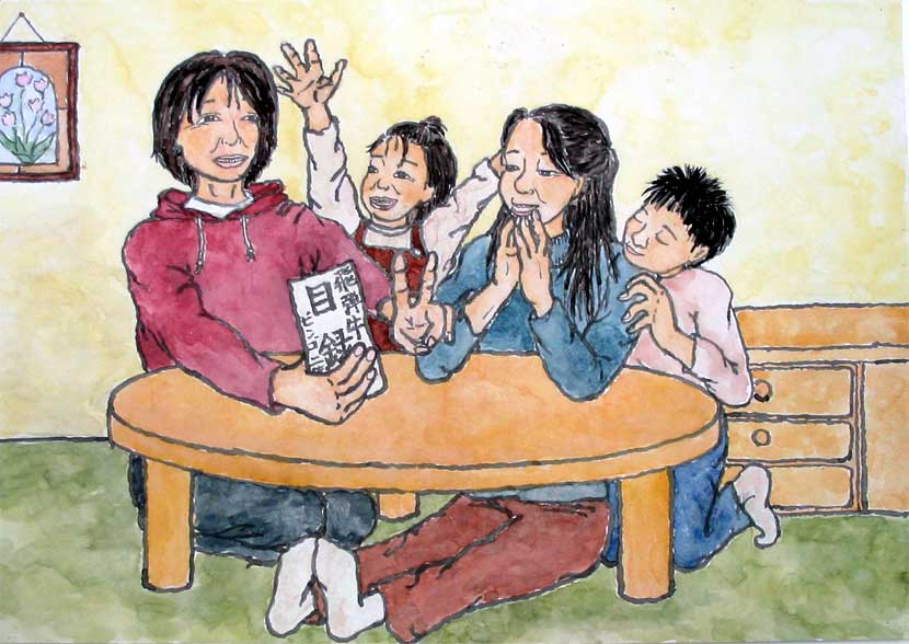 小田部明広さん お盆に家族で障子張りをしている姿を描きました。最優秀賞を受賞できてうれしいです。
