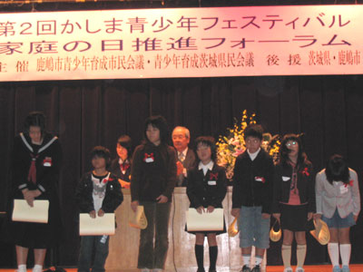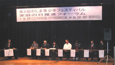 家庭、学校、地域において幅広く家庭の日を普及するため青少年育成茨城県民会議と青少年を育てるつくば市民の会、鹿嶋市青少年育成市民会議がそれぞれ共催してフォーラムを開催しました。このフォーラムは県からの助成を受けて開催したものです。 |